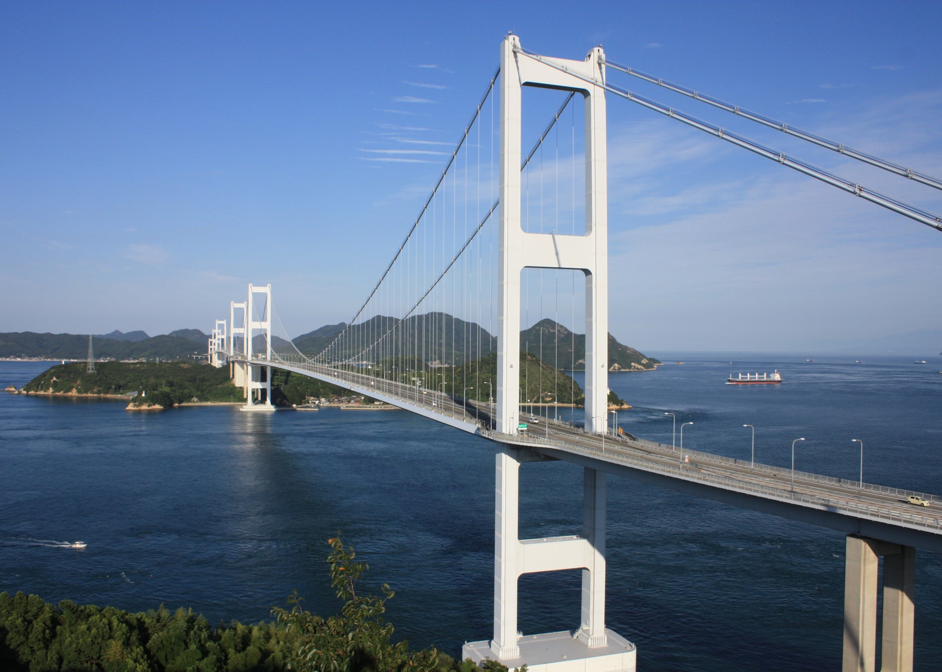 国際的なサイクリングコースとして注目を浴びる、瀬戸内しまなみ海道に架かる吊橋・来島海峡大橋の海上約180mの塔頂案内と、日本三大潮流のひとつである来島海峡の遊覧船をセットにした「来島海峡大橋塔頂体験ツアー」について、9月~12月開催分の参加申込を、7月1日(月)9:00より先着順で受付いたします。