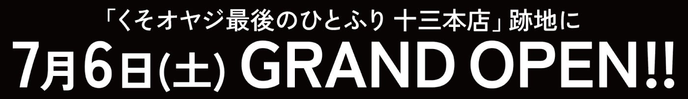 「創業麺類元年」シリーズとして「くそオヤジ最後のひとふり 十三本店」跡地にオープンいたします。