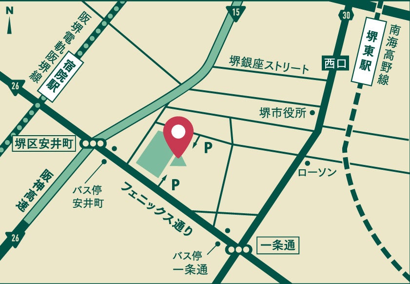 ■住所:〒590-0061 大阪府堺市堺区翁橋町2丁1−2(フェニーチェ堺敷地内)