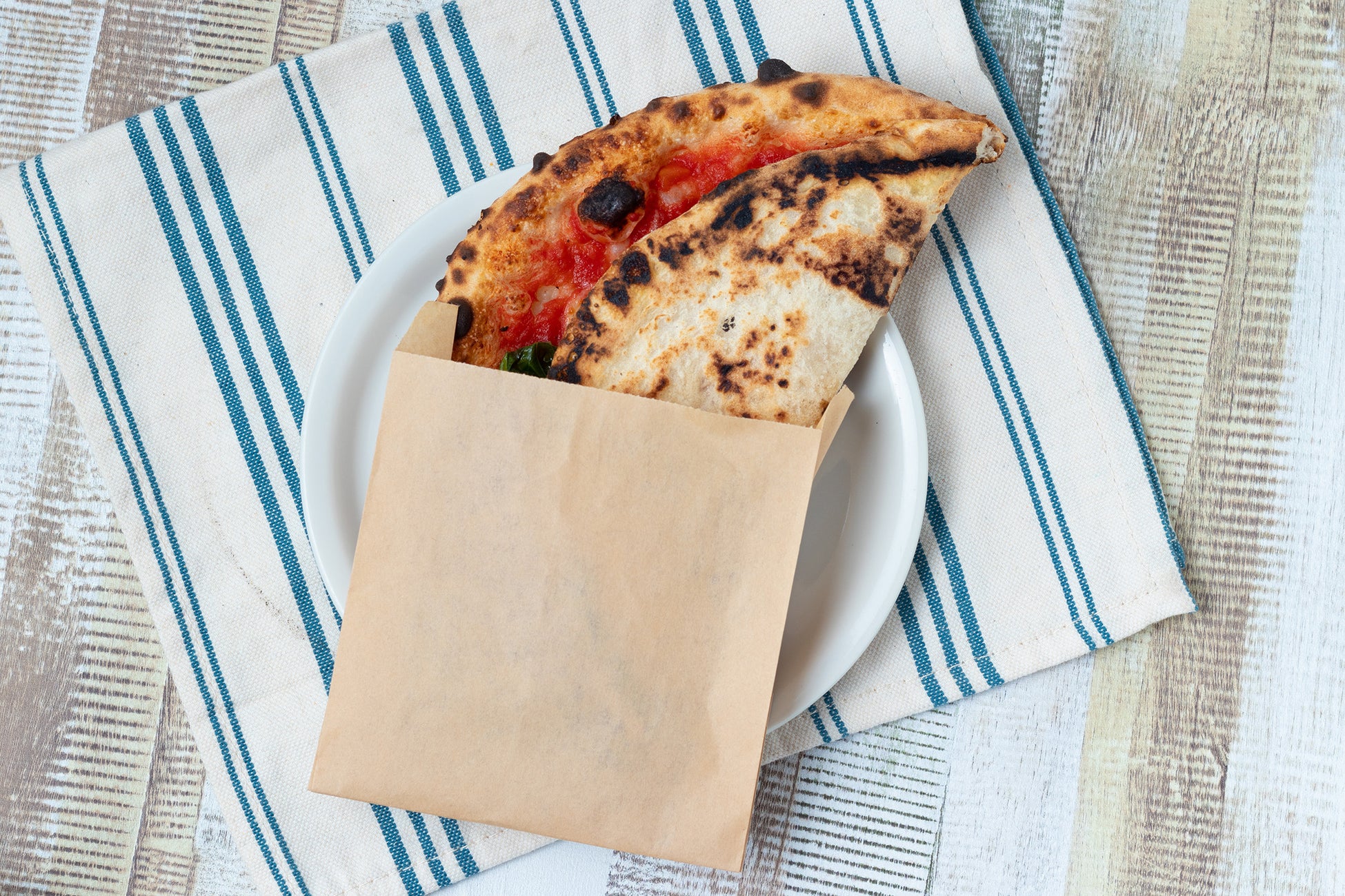 折りたたんで食べやすくしたテイクアウト用ピッツァ。