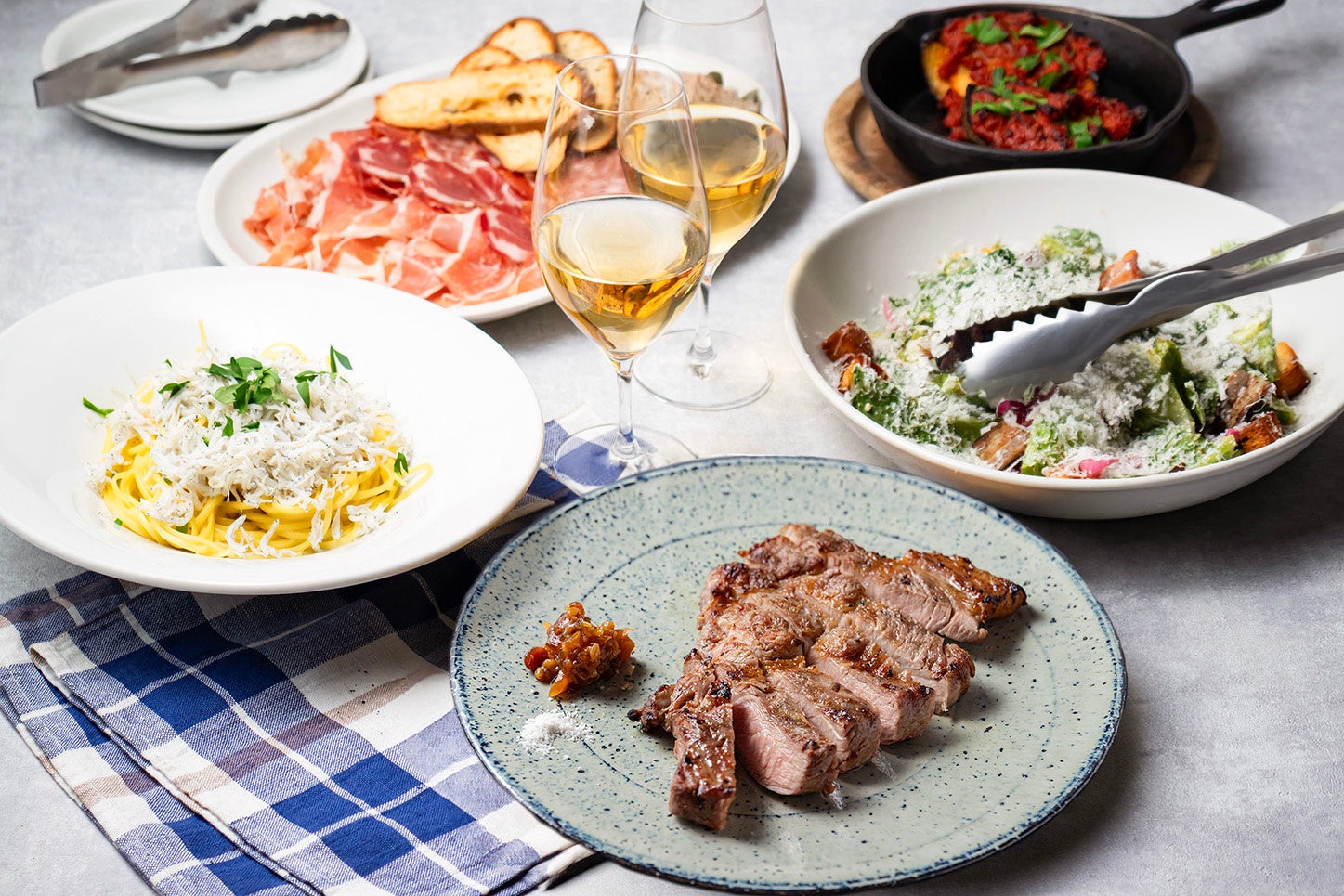 [インサラータミスタ/ポテトフリット/プライム牛肩ロース/優味豚肩ロース/ソーセージ/焼野菜3種/海老のアヒージョ/バケット](※4名様より、要予約)