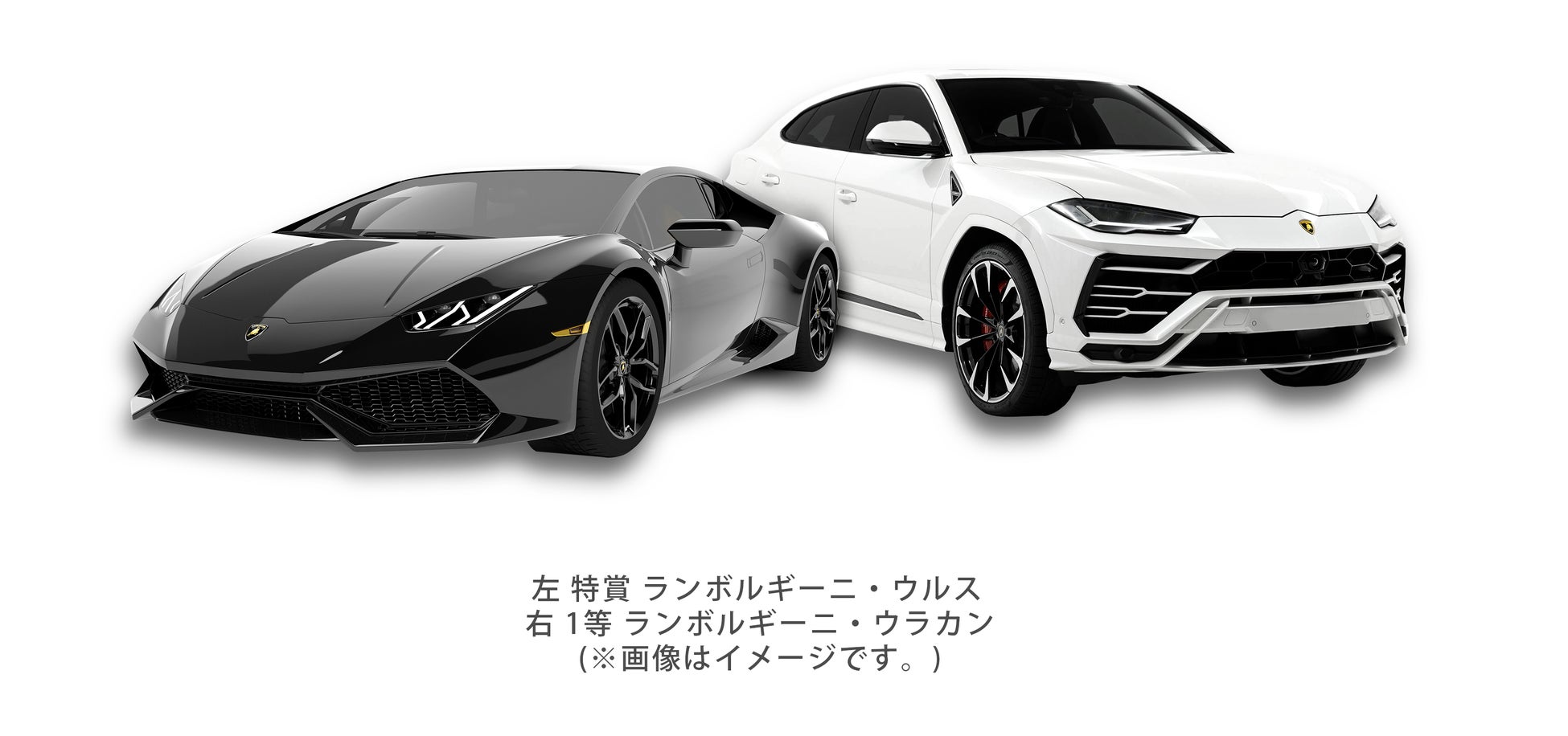特賞にはランボルギーニ・ウルス、1等にはランボルギーニ・ウラカンをご用意しています!