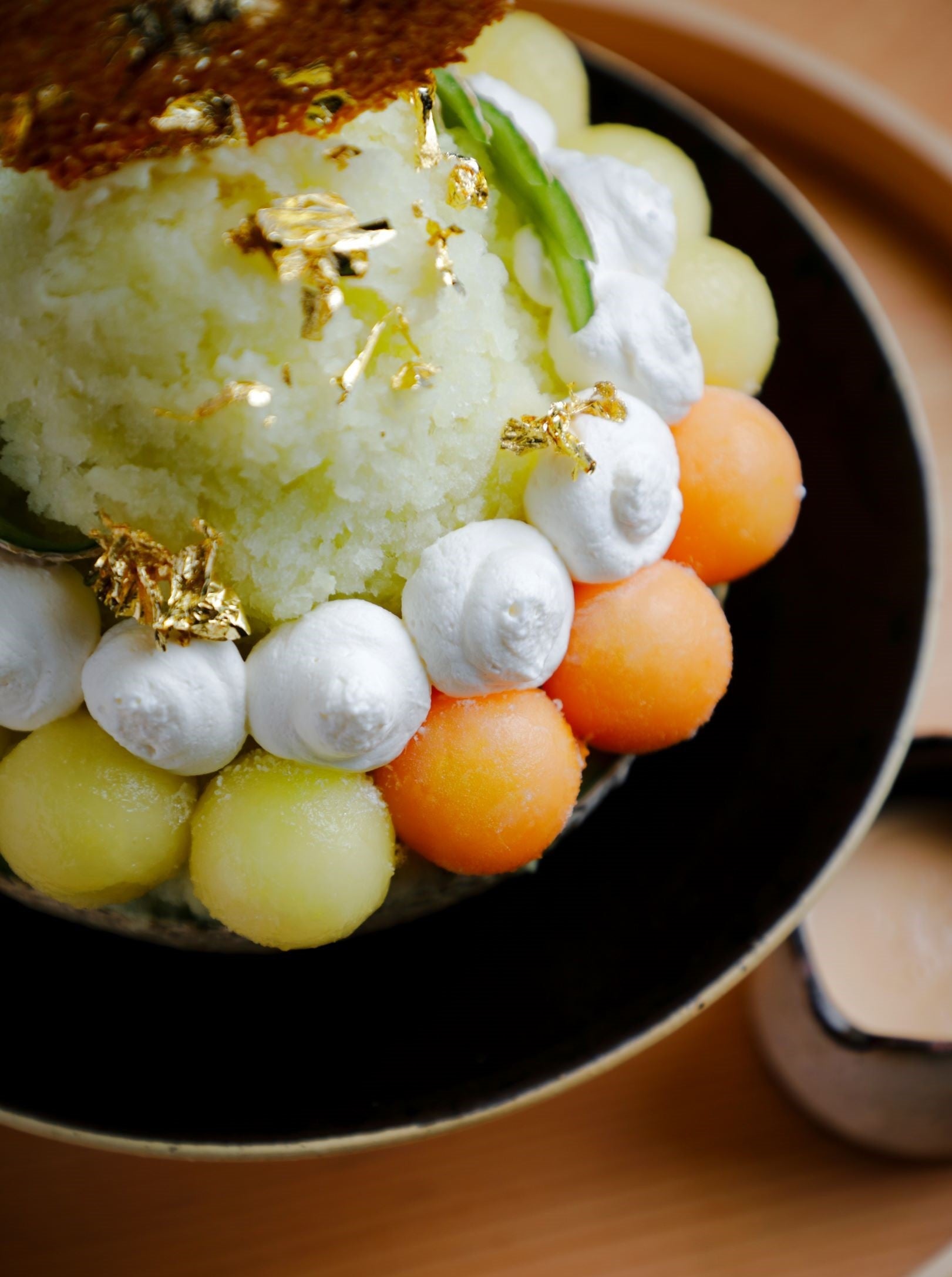 マスクメロンのかき氷 https://www.aman.com/ja-jp/resorts/aman-kyoto/dining/muskmelon-shaved-ice