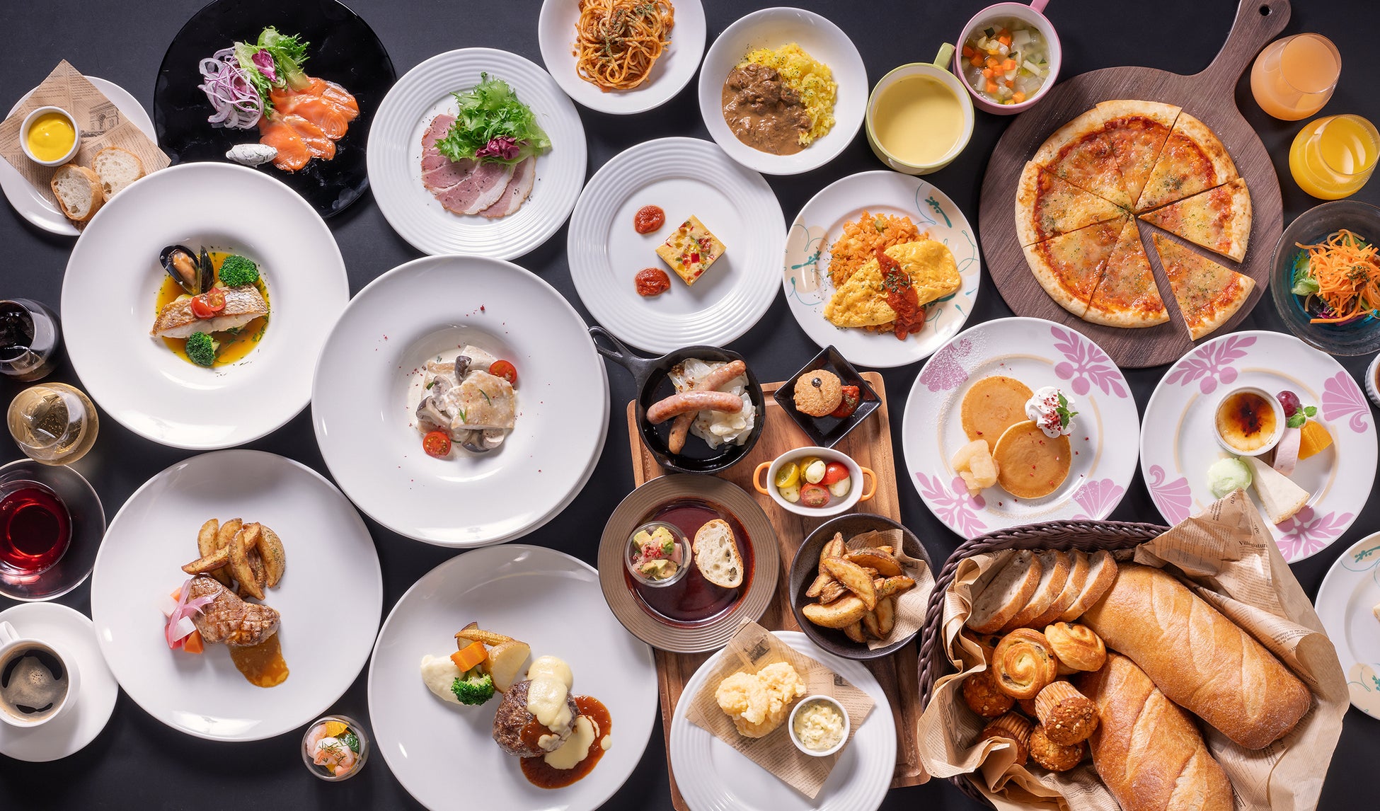 テーブル上のタブレットで席に着いたままご注文いただき、出来立てのお料理をお席までお持ちする「オーダーブッフェ」形式で、いつでも出来立てをお楽しみいただけます。ホテル最上階から一望できる絶景とともに、お楽しみください。