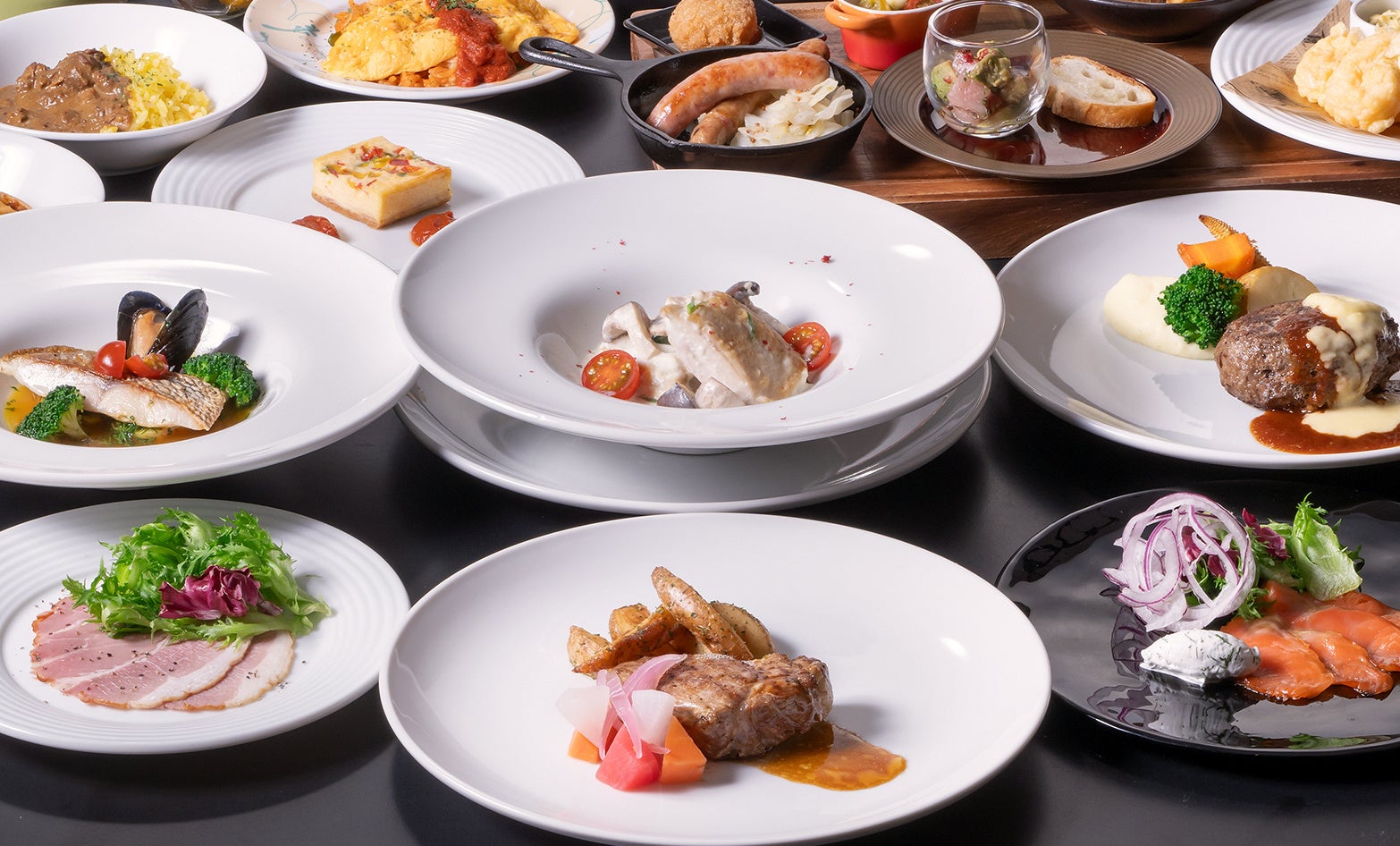 17:30からはメインディッシュ1皿と20種類以上のお料理が食べ放題のオーダーブッフェ 20:00からはジャズを聞きながらアラカルト料理を楽しむ 期間:2024年7月1日(月)~8月31日(土)