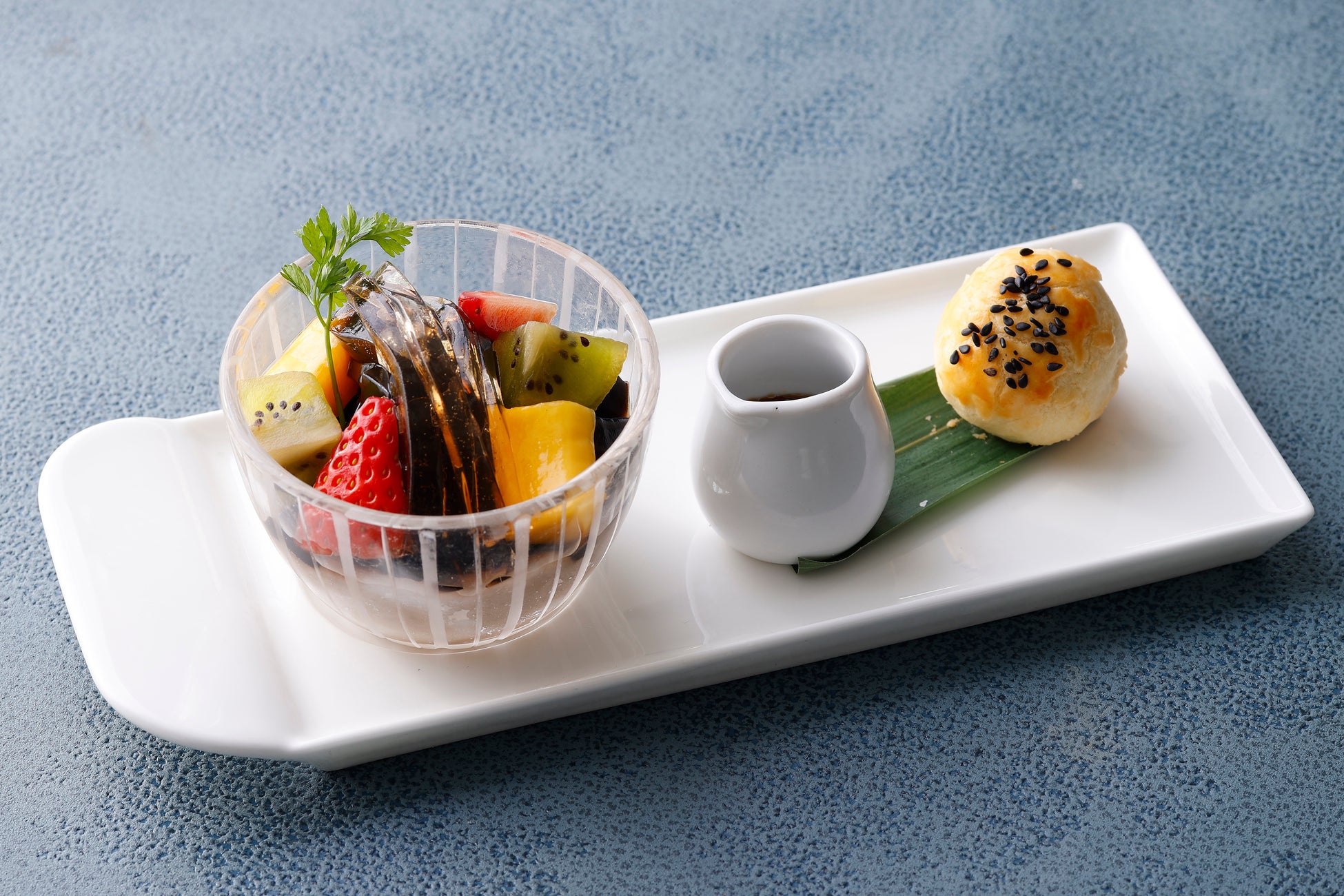 黒蜜シロップの黒ゼリー入りデザートプレート