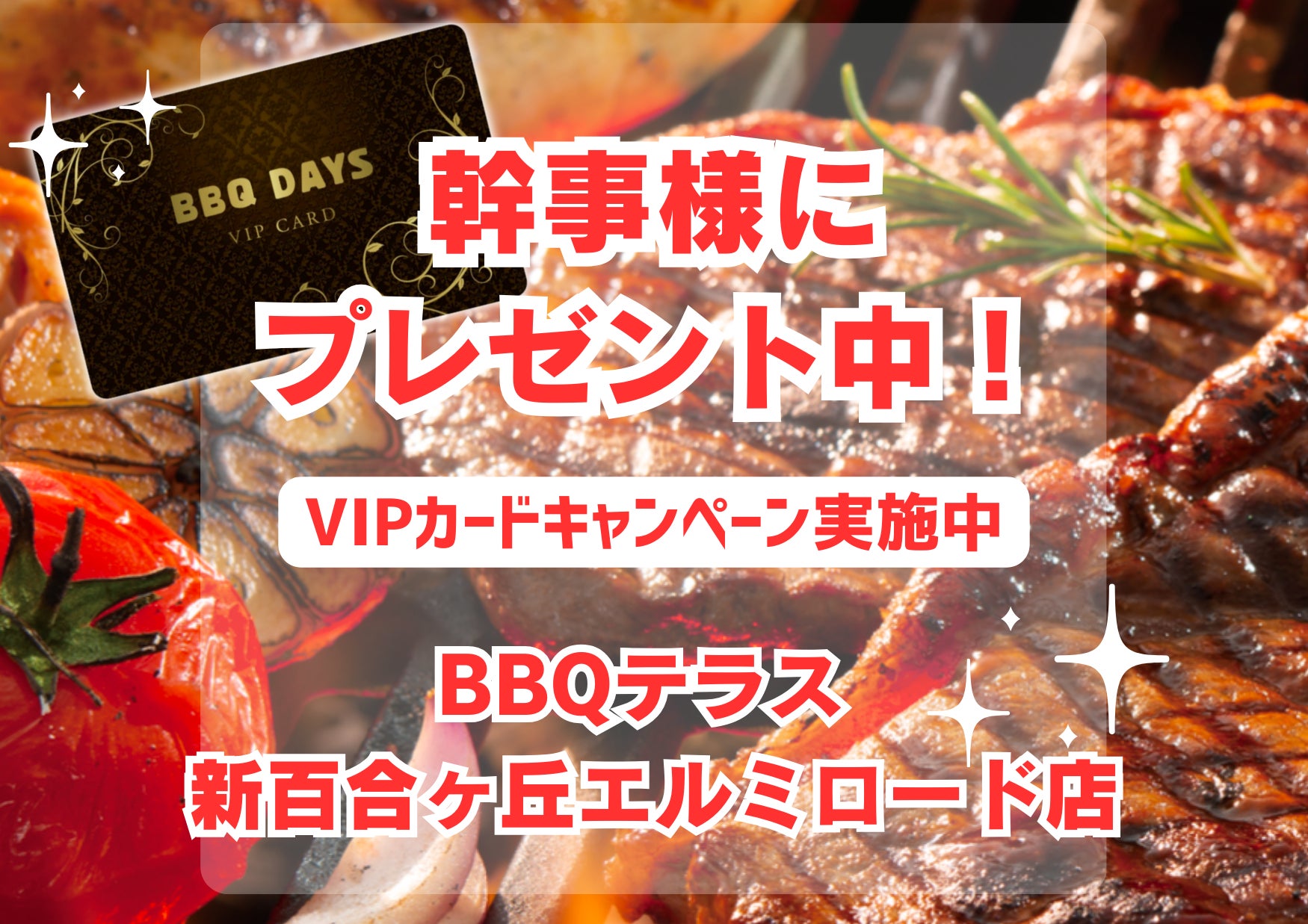 新百合ヶ丘エルミロード屋上 バーベキュー《BBQテラス》7/2(火)〜▶︎▷何度でも無料◁◀︎のVIPカードがもらえる!!40名様以上の団体予約幹事様に!!
