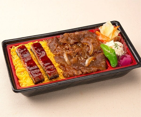 おこわ米八の名物鰻おこわとすき焼きの2大コンビ弁当。