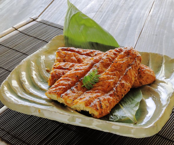 豆腐・ごぼう・山芋・海苔でうなぎの蒲焼に見立てたくすむらの豆腐の蒲焼です。