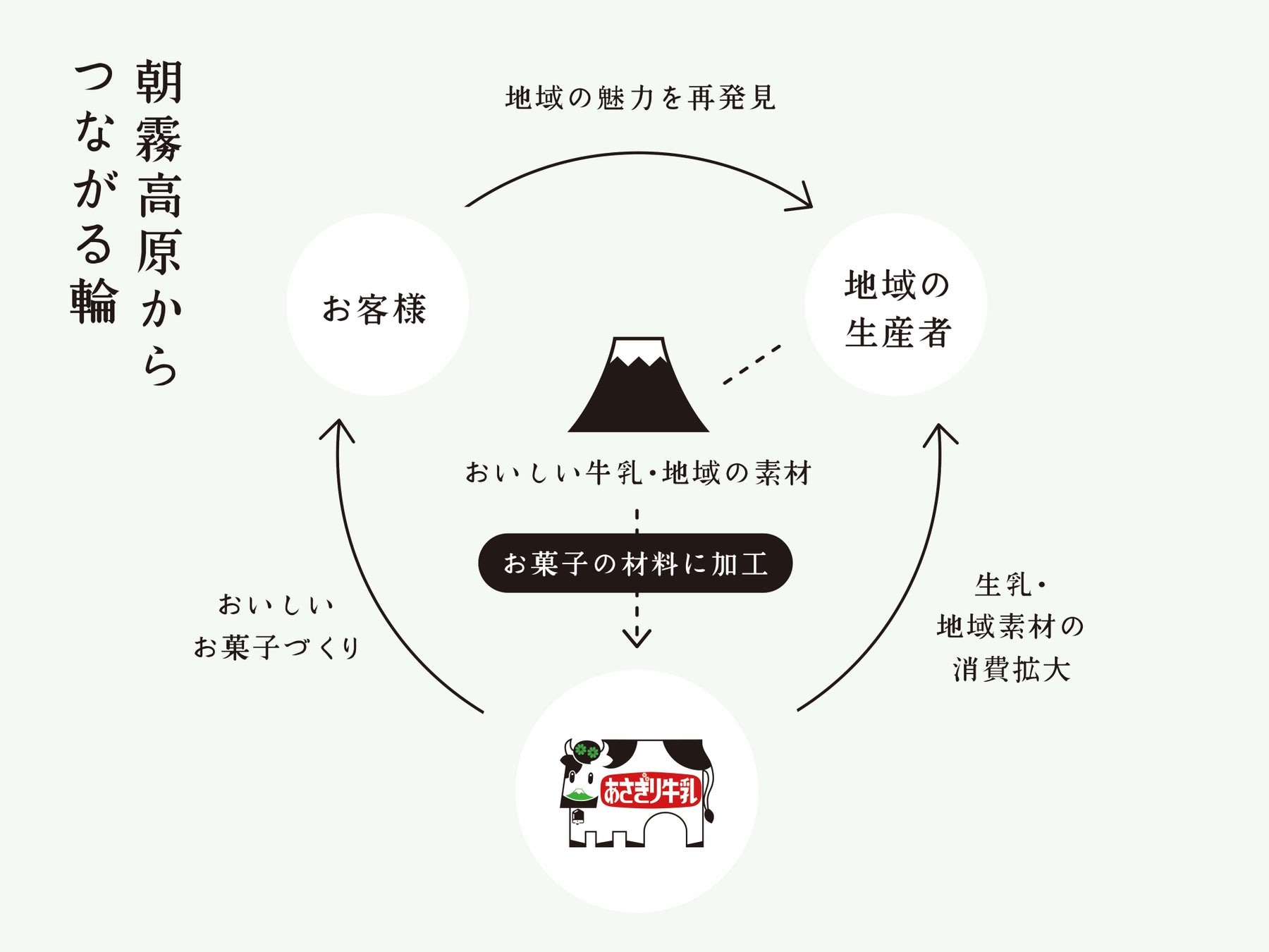 富士山麓の恵み、あさぎり牛乳をたっぷり使用したお菓子を通じて、社会課題である”牛乳離れ”に向き合い、お客様・生産者・地域それぞれに持続可能なサイクルを生み出すエシカルなブランドを目指しています。