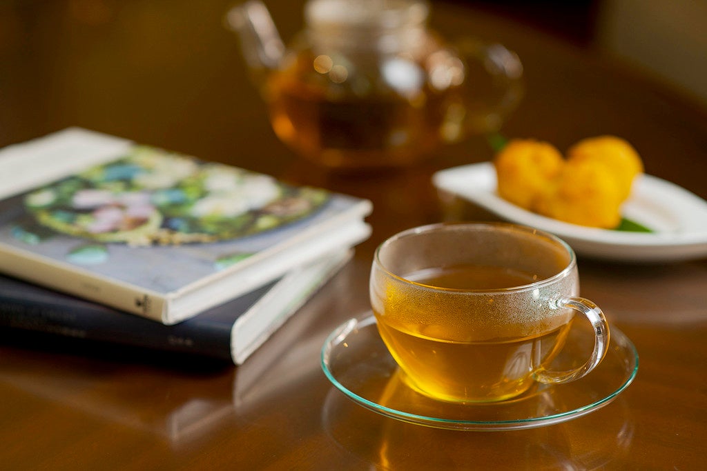 ドリンクサービス8:00-21:00 オリジナルゴーヤージュース、ダージリン、ローズヒップ、ジャスミン茶などをご用意。沖縄の写真集や書籍のお貸出しも。