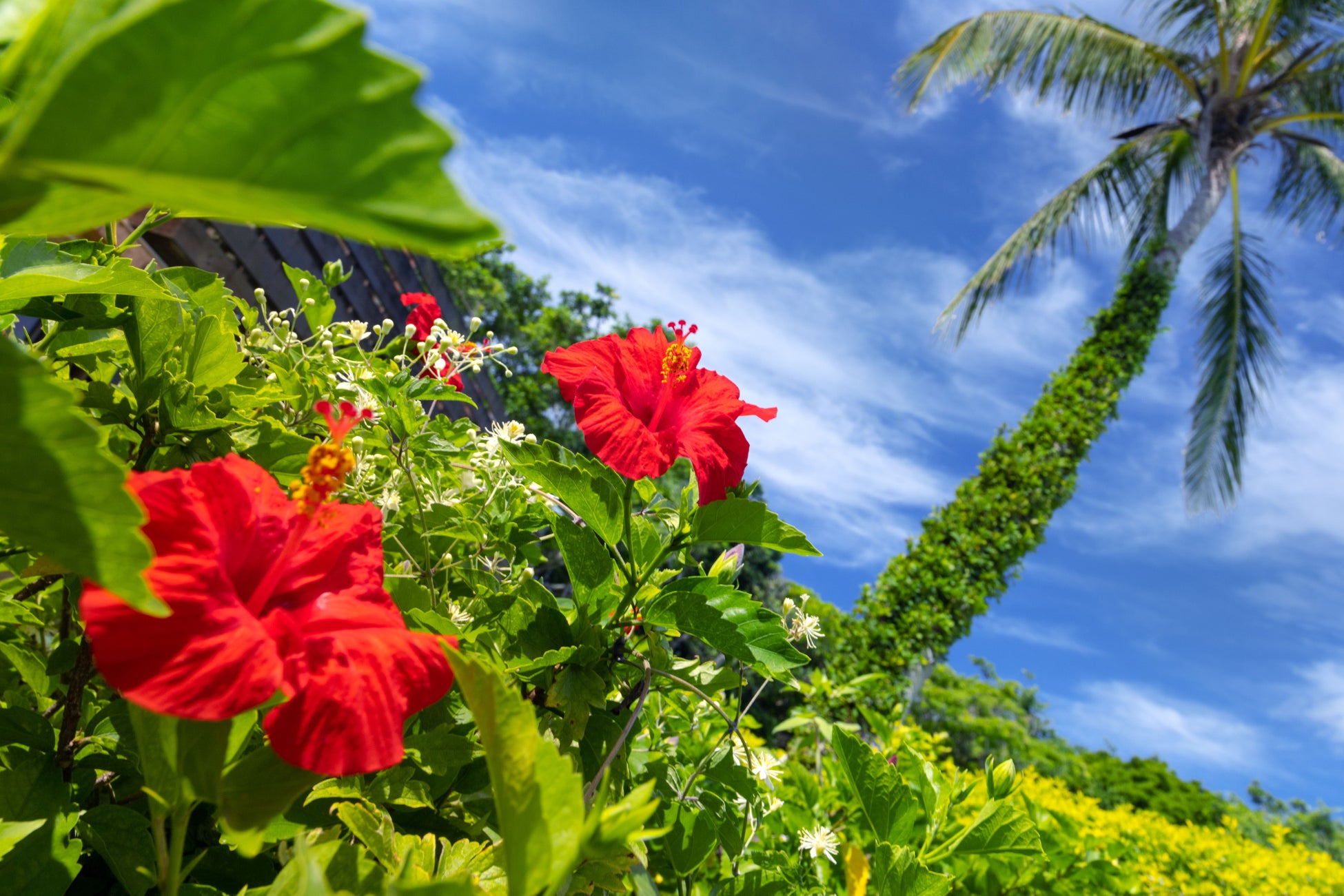敷地内には椰子の木や亜熱帯の花が咲き、我が家のように寛げる心地よさを追求した「大人のリゾート」として、豊かな自然と沖縄の文化に囲まれた過ごし方をご提案しております。