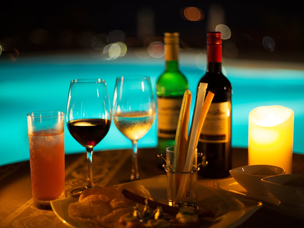 キャンドルがきらめくプールサイドでスナックやカクテルを楽しむイベントです。