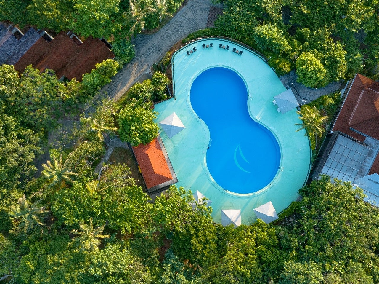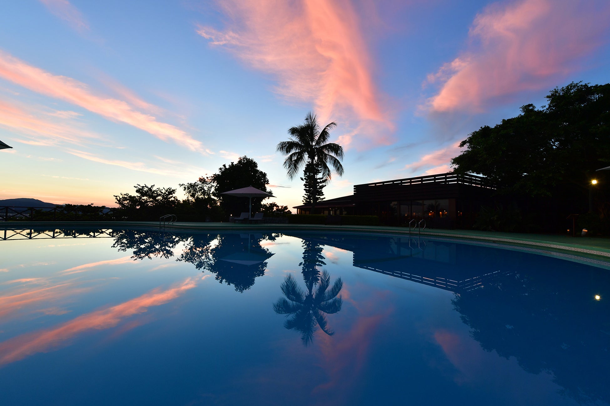 2万3千㎡(約7千坪)の敷地の中心に見晴らしのよいガーデンプールがあり、プールを囲むようにコテージ棟が点在するガーデンリゾート。