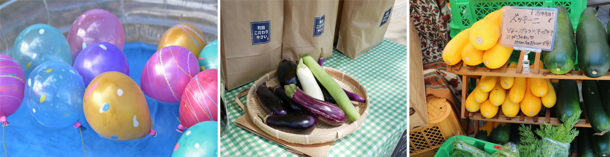 夏祭りといえば、おいしい物とたのしいイベント!新鮮で瑞々しい地場の夏野菜、キッチンカーで出来立てのおいしい物を食べ歩き、駄菓子屋、ヨーヨー・スーパーボールすくい、こだわりのクラフト品など、子どもから大人まで世代を超えてそれぞれの楽しみ方ができるお店が大集合します。いつもとは違ったわくわくとドキドキに出会えるはず。