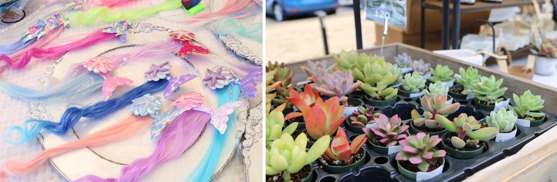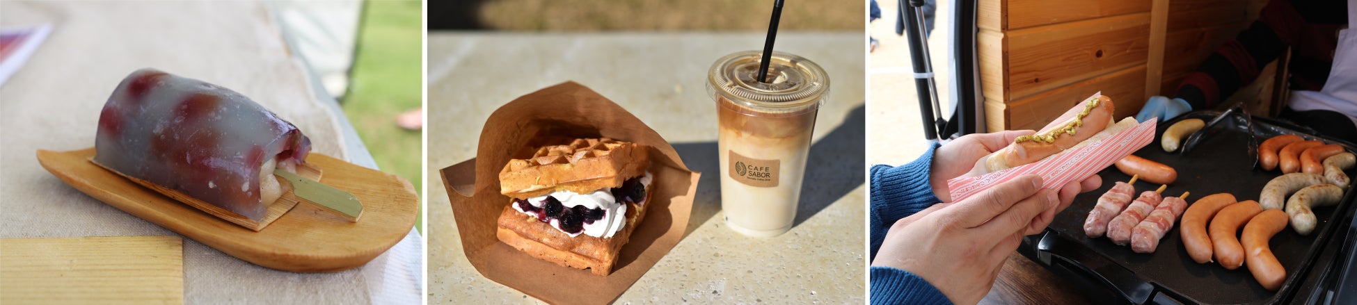 近隣農家さんの地場野菜・果物、地場農畜産物を使った蕎麦もち団子、焼き菓子、駄菓子、蜜蝋キャンドル、アクセサリー、クラフト雑貨、髪飾り、多肉植物、フラワーアレンジメント、ペットのおやつ、だれでも参加できるワークショップ、窯焼きピザ・ワッフル・パフェ・クレープ・おにぎり・ソーセージ・唐揚げ・珈琲のキッチンカー、ヨーヨー・スーパーボールすくい 等、