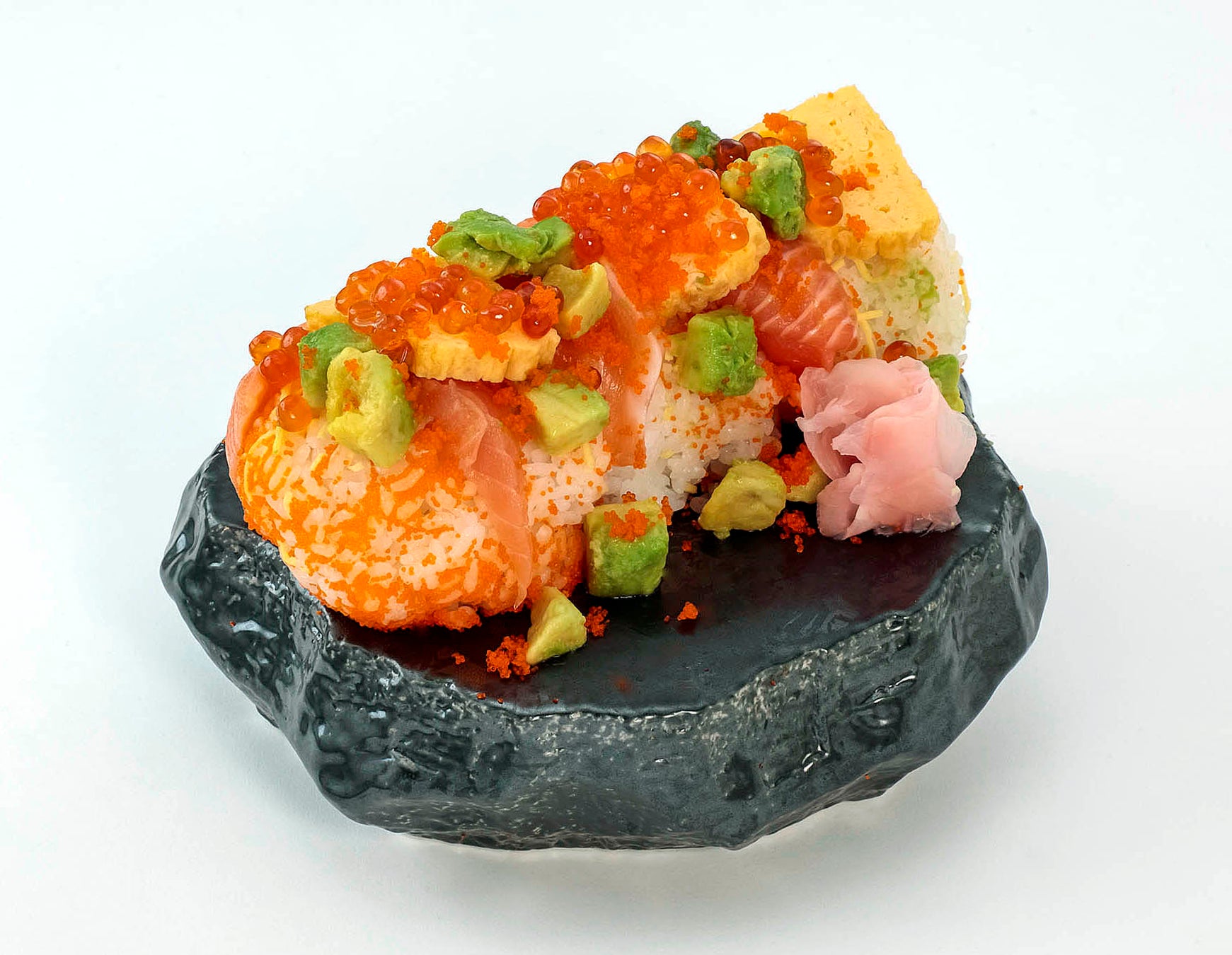 サーモン・アボカド・イクラ・とびっこ・玉子が乗った、見た目も華やかな海鮮丼。