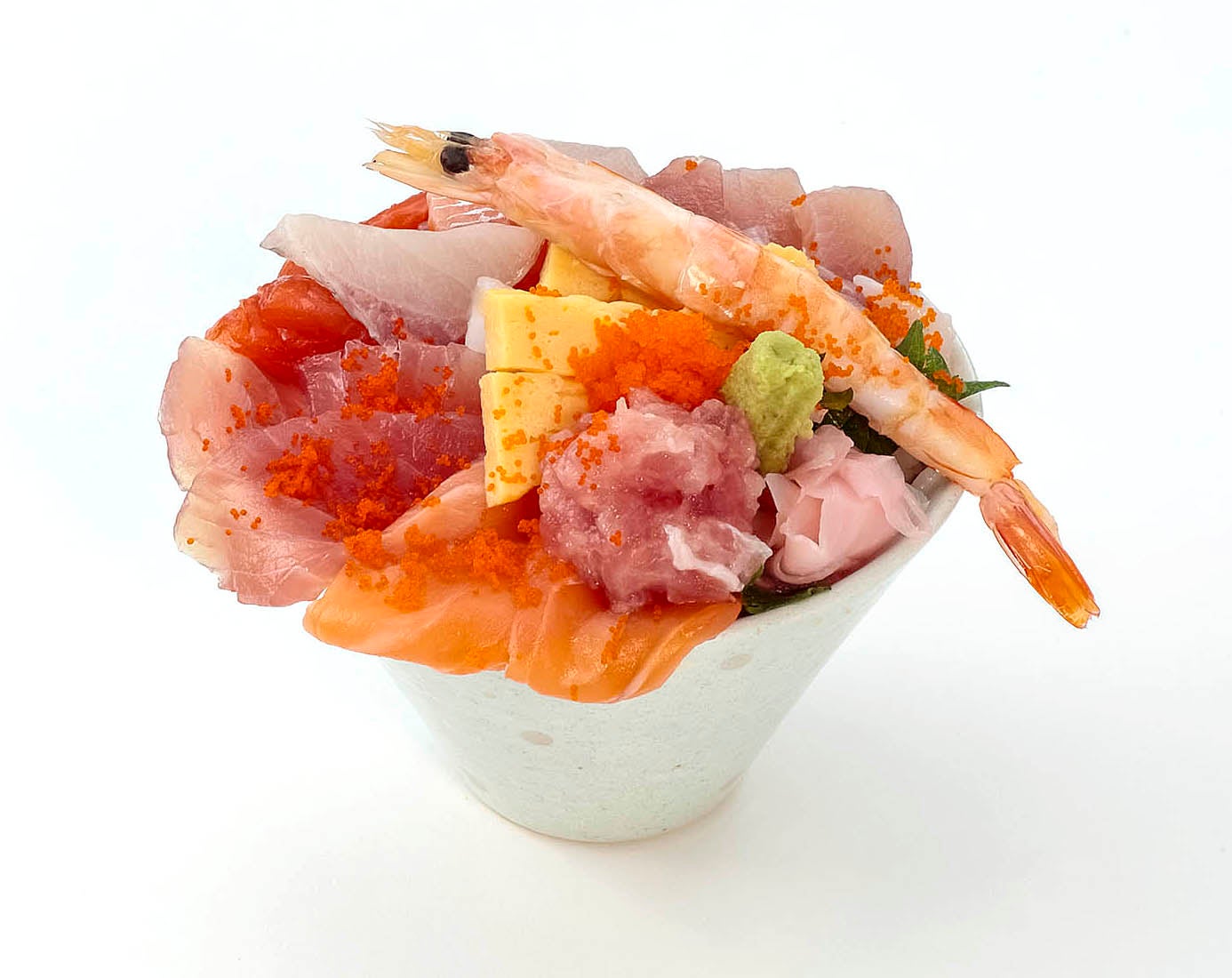 新鮮な海鮮をふんだんに使用したバラちらし丼。1,000円以内でお召し上がりいただける、コストパフォーマンスに優れた一品です。迷ったらまずはこちらをお試しください。
