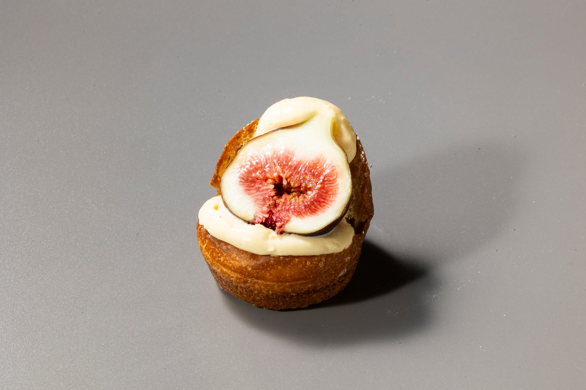 クロワッサン残生地から生まれたサステナブレッド。残生地をタルトにして、上からシュー生地を絞って焼いた、2つの異なる食感を一度に味わえる新食感のパン