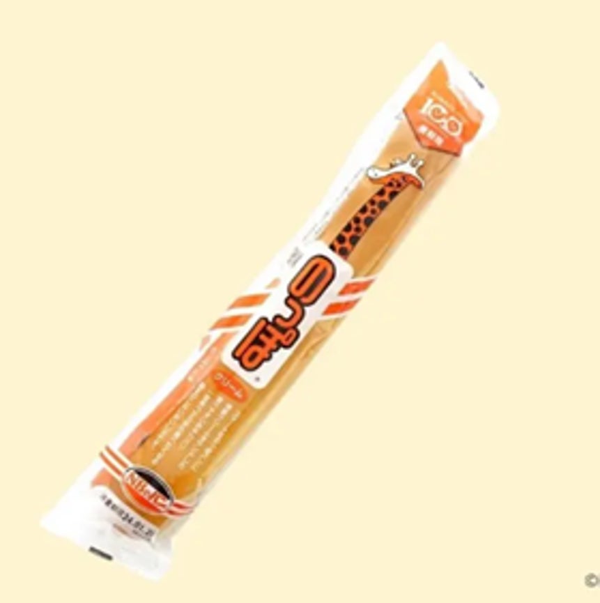 1978年に発売されるやまたたくまに大人気となった静岡発の菓子パンです。長さ34cmの長いパンにミルククリームをサンド。ちょっぴりユーモラスなキリンのキャラクターと合わせて、静岡県民に大人気のソウルフードが和蔵場初登場