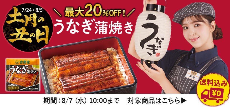 吉野家公式通販ショップ「冷凍うなぎ蒲焼き」を最大20%オフで提供