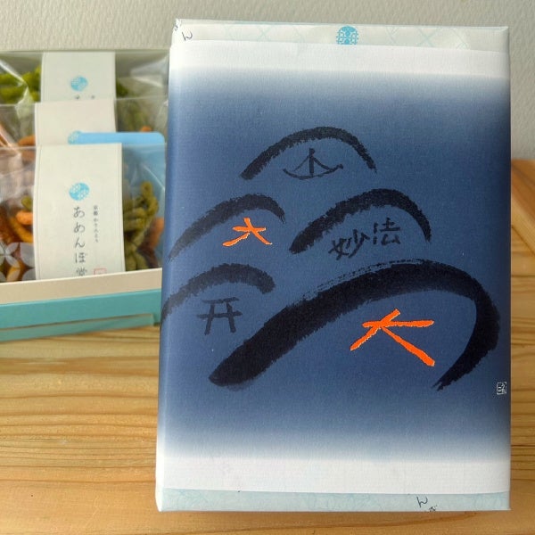 かりんとう詰め合わせをご進物用にお買いあげの方に、五山送り火ラッピング(京都限定掛け紙)をご用意。