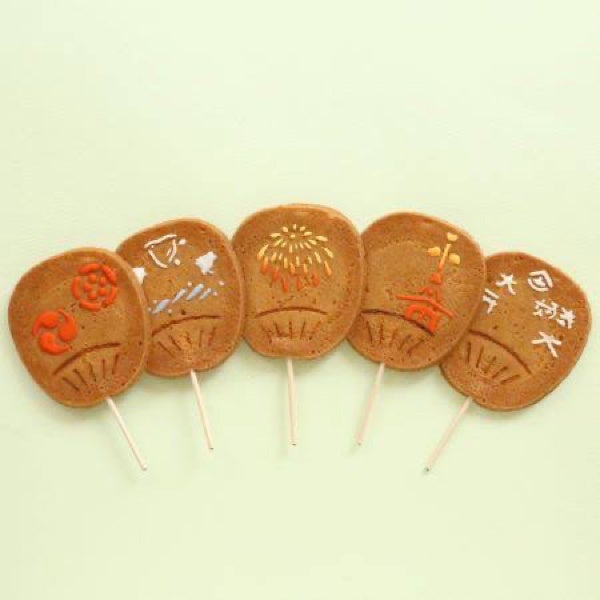 京都の夏を描いたうちわ型の京せんべい[大文字]