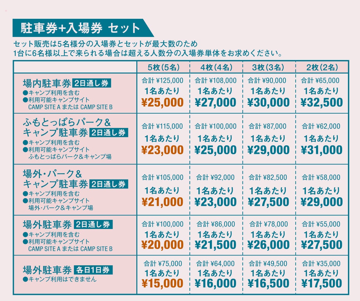 今年から、富士山周辺の自然環境負荷を減らすため、車1台に対して乗り合い人数が多いほどお得な「環境割引」を初導入!1人あたり最大12,500円もお得になる駐車券 + 入場券セットもあるなど、割引率の高いチケットも要チェックです。