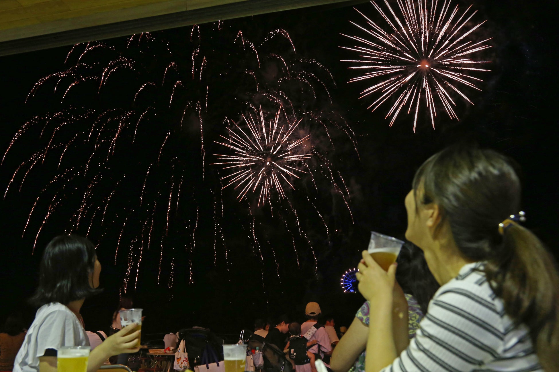 打上花火の鑑賞エリアは広く、芝生に寝転がってゆっくりと花火鑑賞がお楽しみいただけます。
