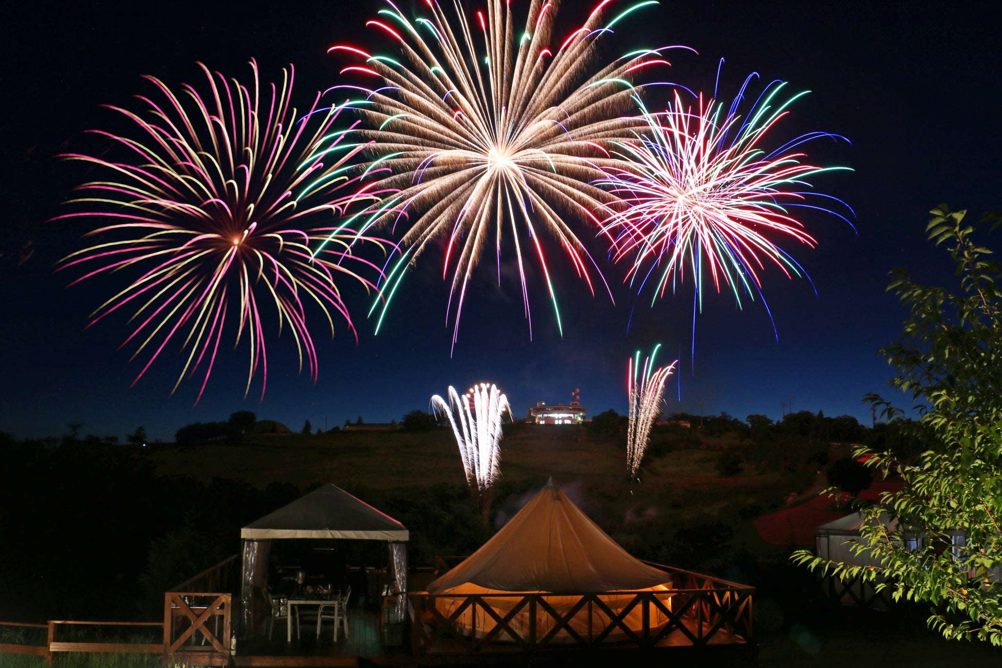 通常のグランピング体験に加えて優雅に花火の鑑賞もしてみてはいかがですか?
