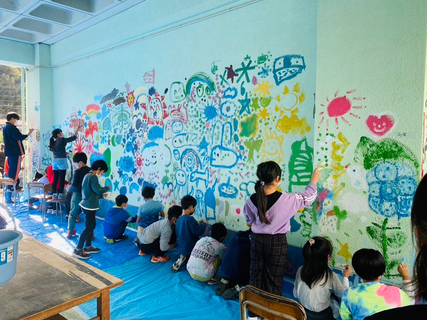 作家ひすいこたろう氏と共同で出版した書籍『今日、誰のために生きる?』が20万部を突破し、現在話題沸騰中のアーティストです。普段から小学校や幼稚園など様々な場所でアートワークショップを開催しており、子どもたちと一緒に駅のホームやフェリー乗り場の待合所、町営バスやゴミ収集車などに絵を描く活動を行っています。