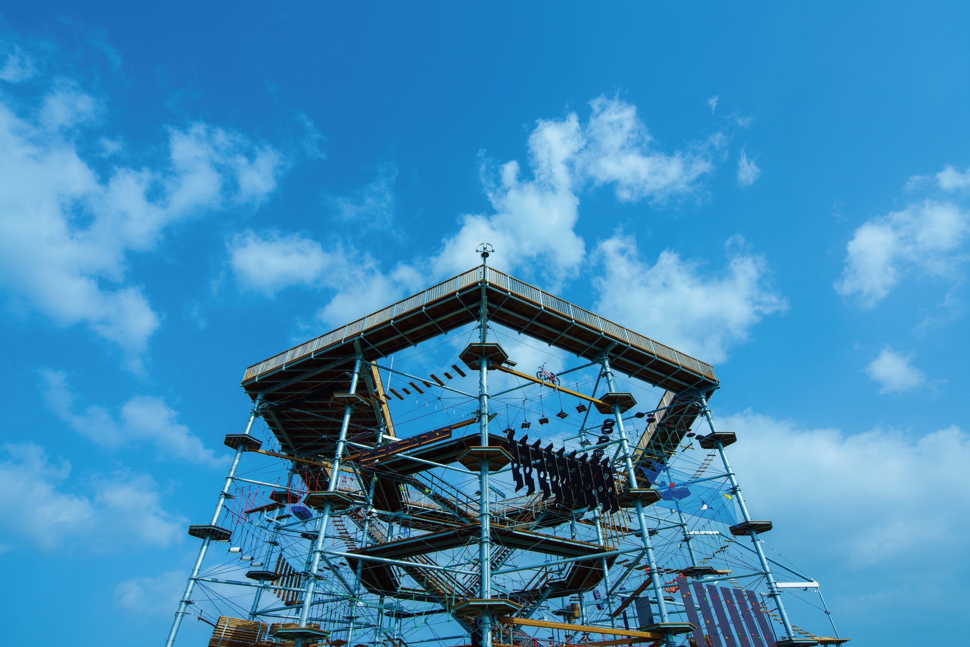 身長100cmからプレイ可能なキッズコースが付属するものでは国内最大規模を誇る。命綱を装着してプレイをするため、安全を確保しながらスリリングでチャレンジングな体験が可能。
