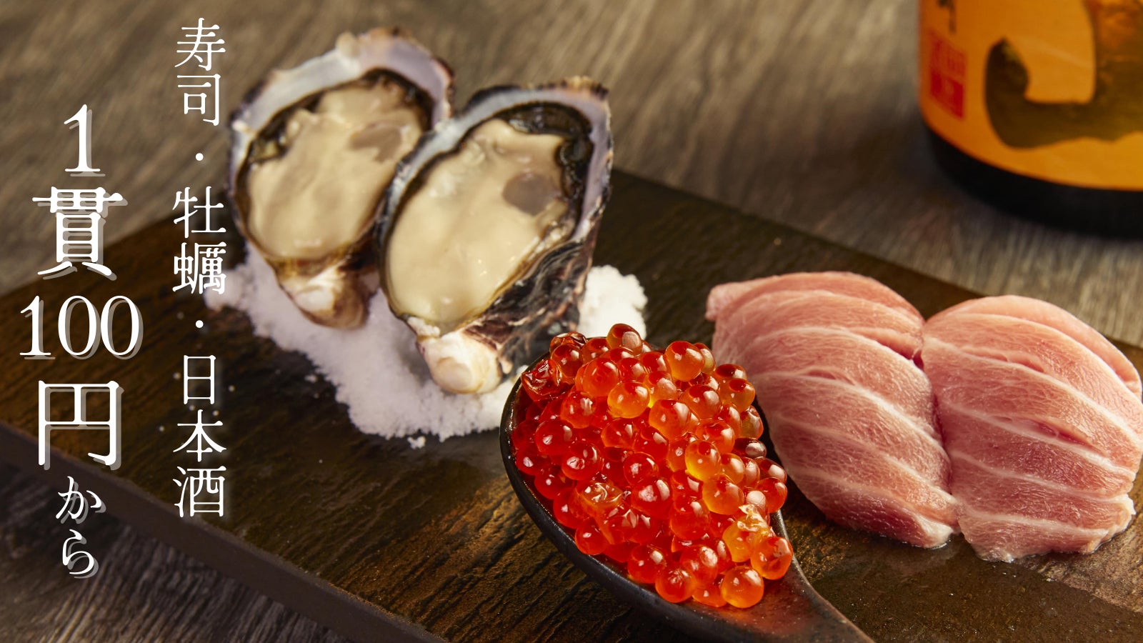 寿司1貫100円~、牡蠣300円~、日本酒(1合)450円~で食べられると話題