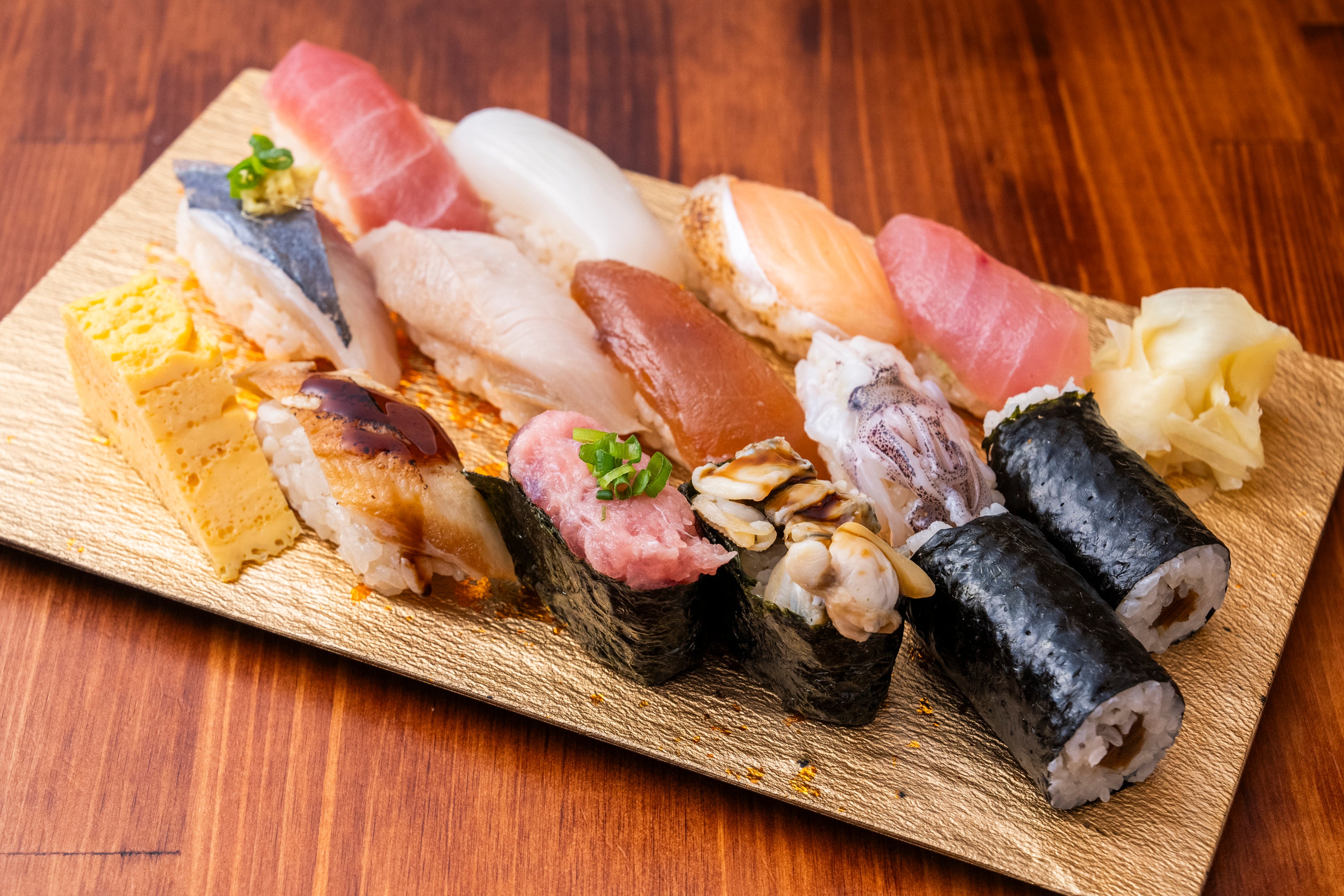 「カウンター寿司より手軽に、回転寿司より少し贅沢に」お楽しみいただける寿司店。魚のプロが厳しい目で厳選した鮮魚や旬の魚介、こだわりの赤酢で仕立てたシャリ。目の前で職人が握る本格江戸前寿司をお楽しみいただける鮨スタンドです。立食いの場合は、ランチメニュー(平日11:00~16:00)が100円引き、サワーとハイボールは終日半額となり、さらにお得に寿司を楽しめます。