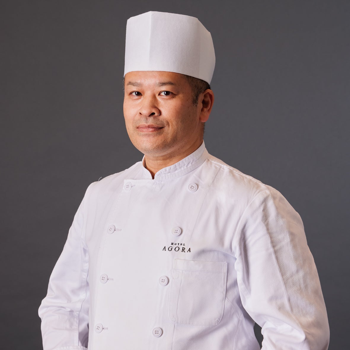 高校卒業後、老舗宴会場「太閤園」の洋食調理課に入社。宴会部門やレストラン部門、製菓部門の各セクションチーフを歴任し、多岐にわたる経験と活躍が高い評価を受け、洋食調理部署長に就任し、チームを牽引。太閤園の閉業を機に、ホテル アゴーラ 大阪守口に洋食料理長として入社。