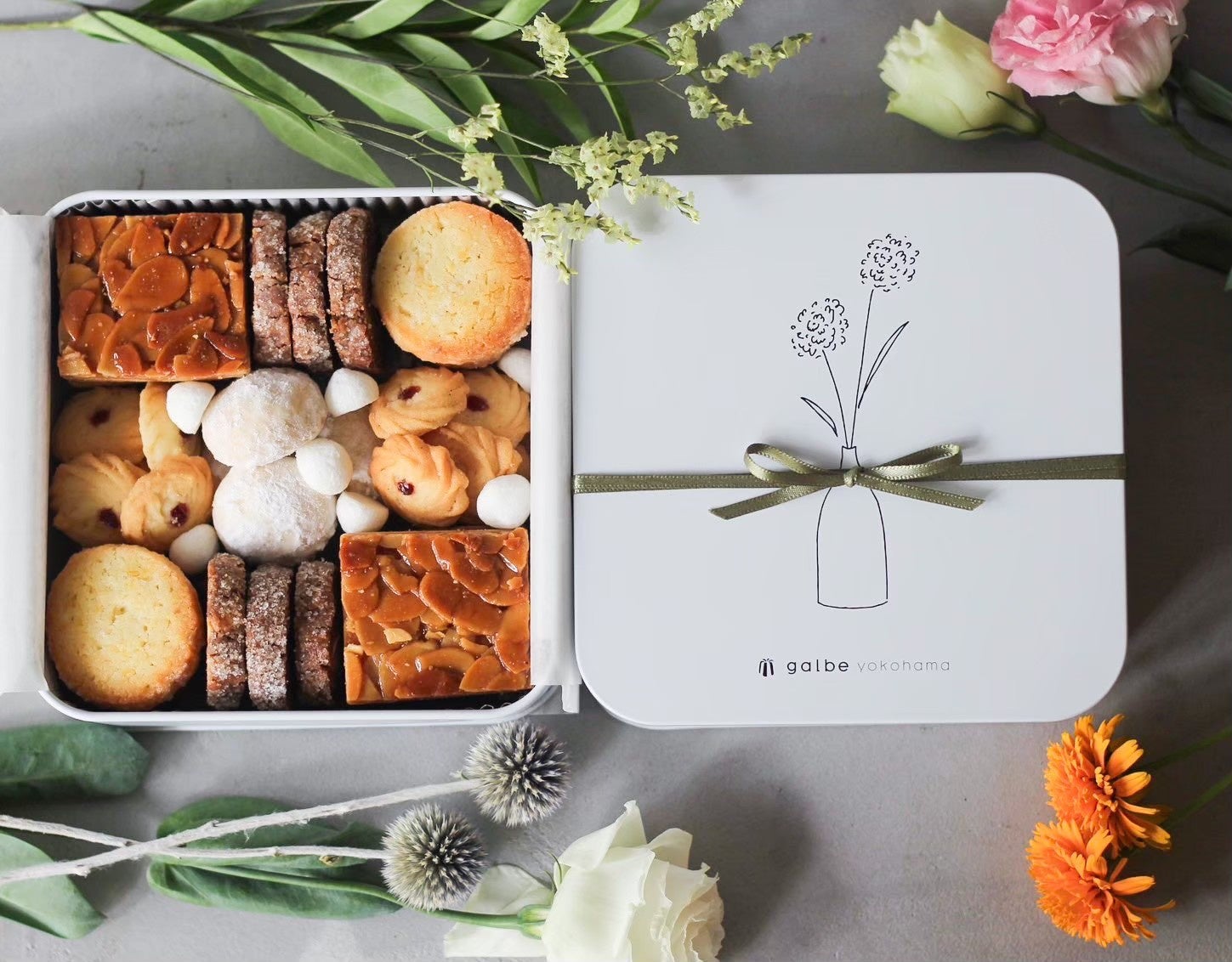 実はカヌレ以外にも人気の焼き菓子がたくさん。galbeのクッキー缶や詰め合わせは、デザインも可愛らしく、帰省シーズンのプレゼントに大変喜ばれます。