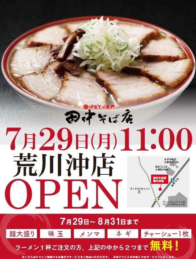 茨城県初出店!「中華そば専門 田中そば店 荒川沖店」(土浦市)がグランドオープン。【SNSフォローでオープン特典あり!】