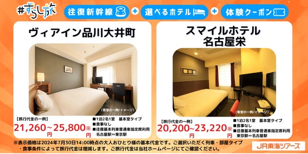 株式会社ジェイアール東海ツアーズ(本社:東京都中央区、以下JR東海ツアーズ)では、2024年7月30日(火)14時より、2024年10月以降出発分の「EXずらし旅」を発売開始いたします。新幹線とホテルを個別で予約するより、セットで予約するのがおトク。当社最安値の「EXずらし旅」は、もっとおトクです。混みあう秋の行楽シーズンは早めの予約がおすすめ。是非お見逃しなく!