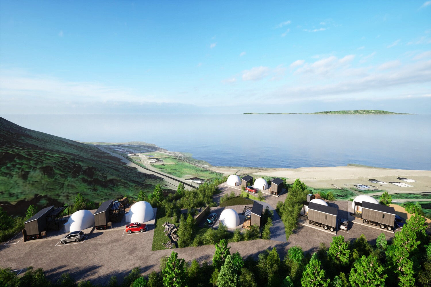 真っ青な日本海を見下ろす高台に全7棟の大型ドームテントを配置。