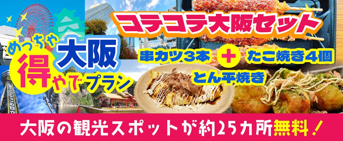 大阪市内25以上での無料スポットを楽しめて+大阪名物グルメがついた 大阪めっちゃ得やでプランを販売開始しました。