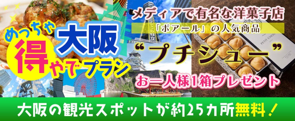 大阪楽遊パス1日券付き+「ポアール」の人気商品「プチシュー」お一人様1箱お土産付き