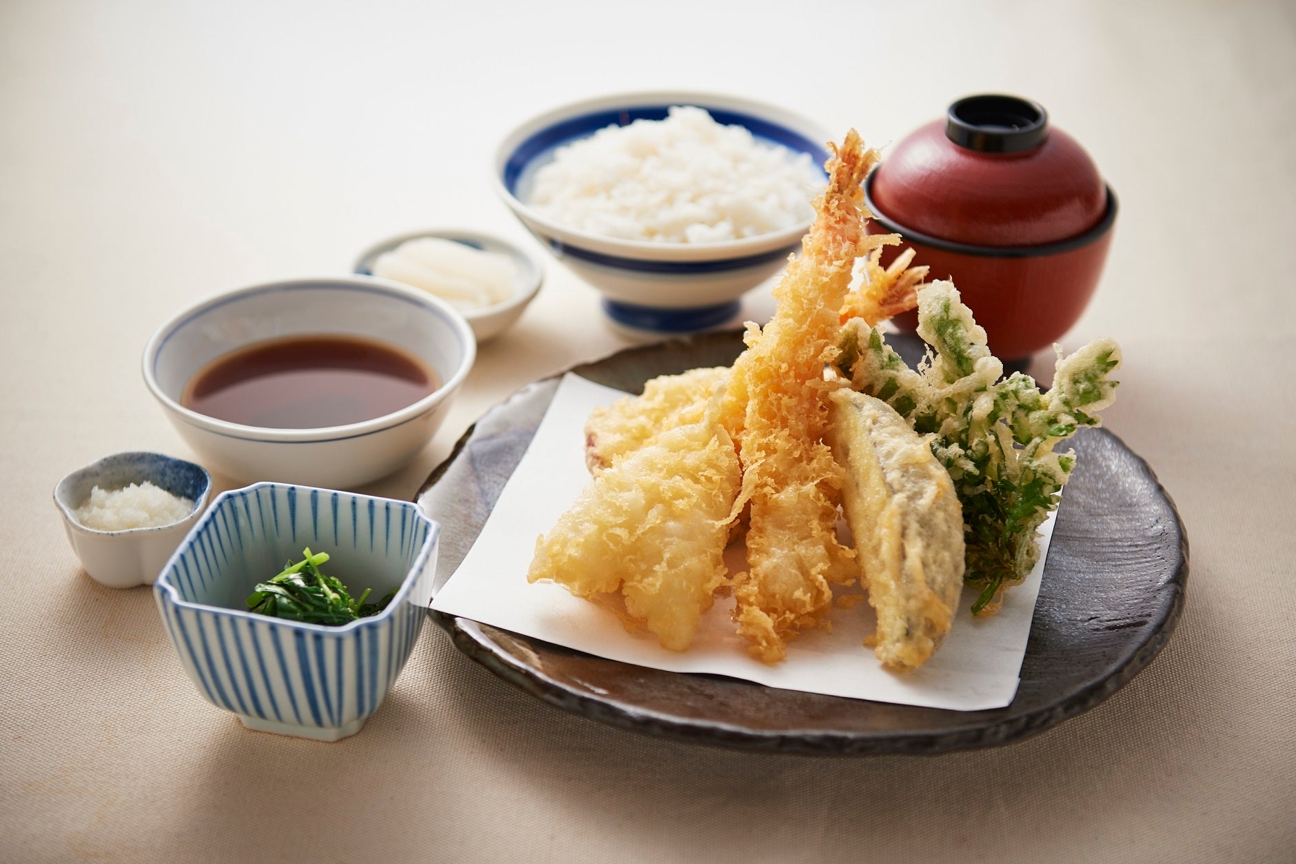 みずみずしい泉州水なすをはじめとした、大阪府産野菜の素材の味を楽しめる特別天ぷら定食。