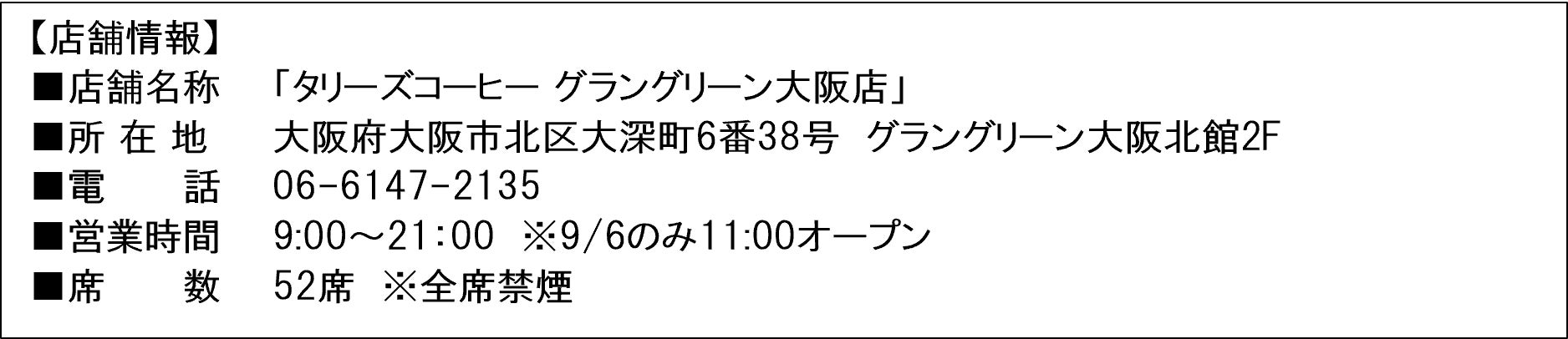 『タリーズコーヒー/有隣堂』 初のコラボレーション店舗「タリーズコーヒー グラングリーン大阪店」を9月6日(金)オープン !