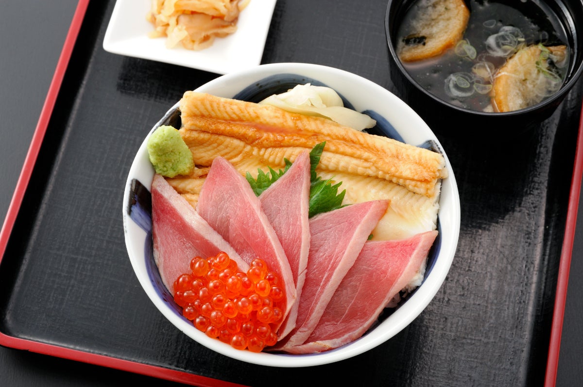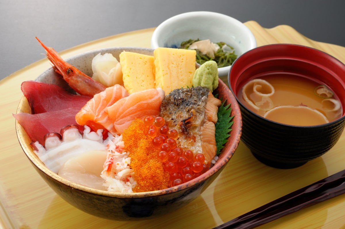 南三陸で水揚げされる旬の新鮮な魚介類をたっぷりと丼ぶりに盛り込みました。