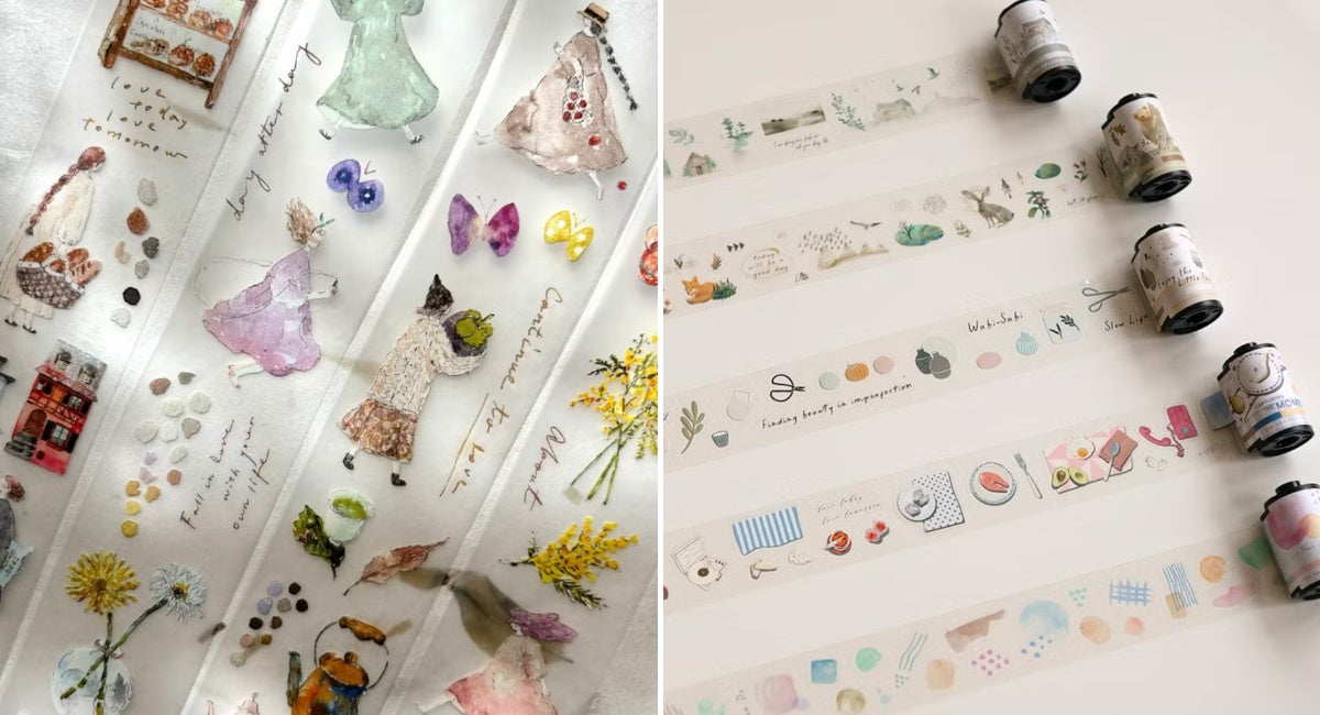 台湾・香港を中心にアジアで人気のPET素材のデザインテープ。手帳など紙への馴染みがよく、再剥離可能で手帳のデコレーション素材として、日本でも近年注目を浴びています。