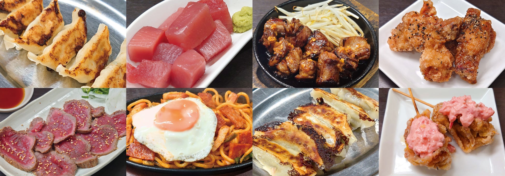この他には、厳選牛を使用した「肉のたたき」や、「まぐろのぶつ」をはじめ、お急ぎの一品や焼き物、揚げ物などメニュー豊富にご用意、一切手抜きなしの渾身のメニューを取り揃えております。