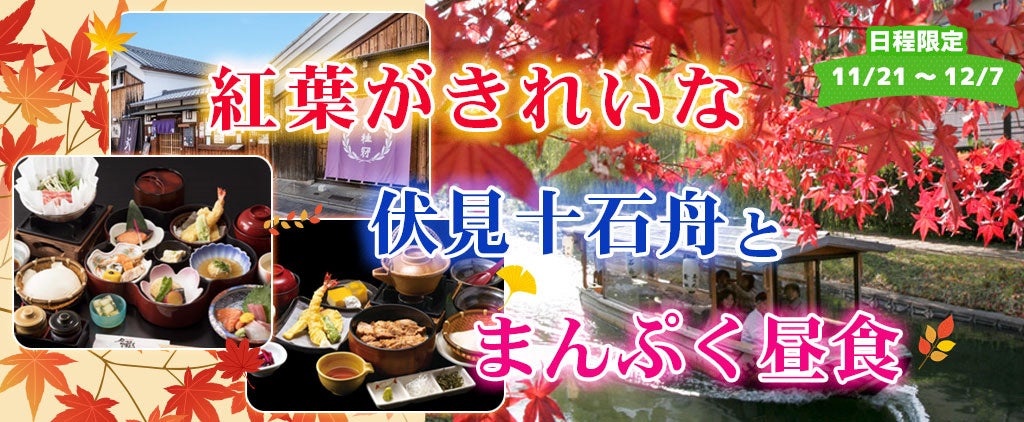 【京都・伏見】紅葉がきれいな伏見十石舟とまんぷく昼食。 【11/21~12/7出発】