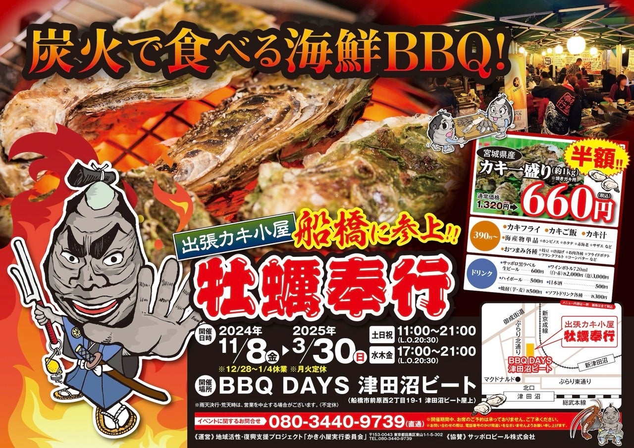 [開催期間] 2024年11月8日~2025年3月30日 [定休日] 毎週 月・火 (年末年始休業 12/28〜1/4)<牡蠣奉行 in BBQDAYS津田沼ビート>