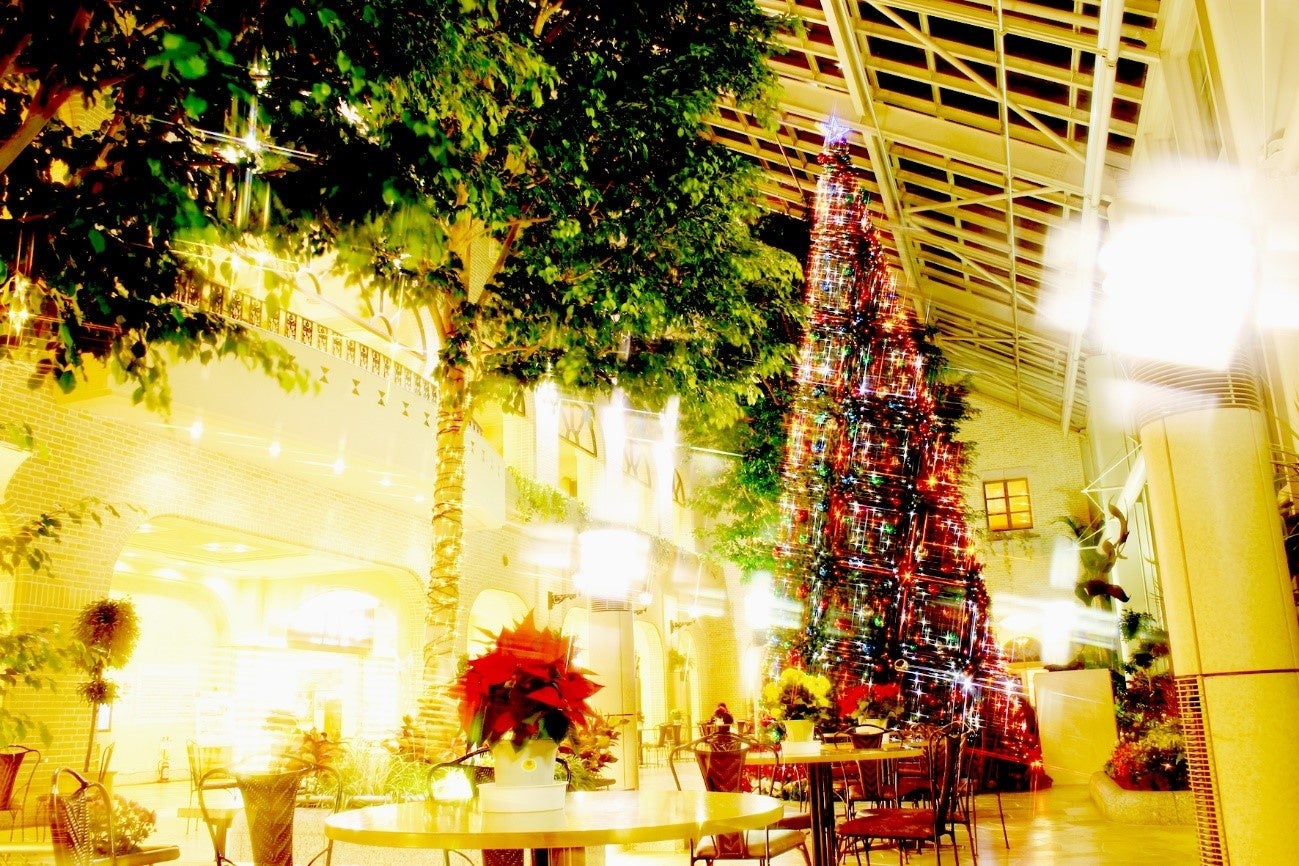 このツリーは2004年以来、毎年淡路ハイウェイオアシスのメイン施設であるオアシス館1Fのアトリウムに設置しているもので、おかげ様で今年で20回目を迎えます。