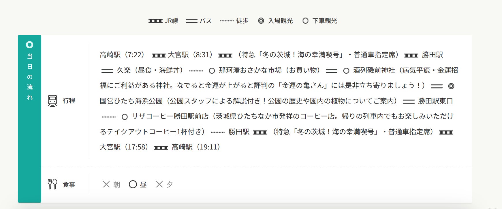 - ツアー名 【ネット限定】直通臨時列車「冬の茨城!海の幸満喫号」で行く那珂湊おさかな市場・酒列磯前神社・国営ひたち海浜公園 日帰りの旅